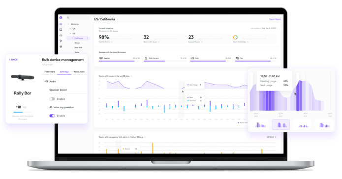Contrôlez et gérez facilement tous les appareils et salles à l’échelle appropriée grâce à Logitech Sync. Surveillez l’état des salles, apportez des mises à jour et ajustez les paramètres – le tout sur une seule plateforme fonctionnant dans le cloud. Activez des fonctionnalités premium, telles que des conseils, une interface à distance pour le dépannage et des alertes proactives avec les licences Essential ou Select.